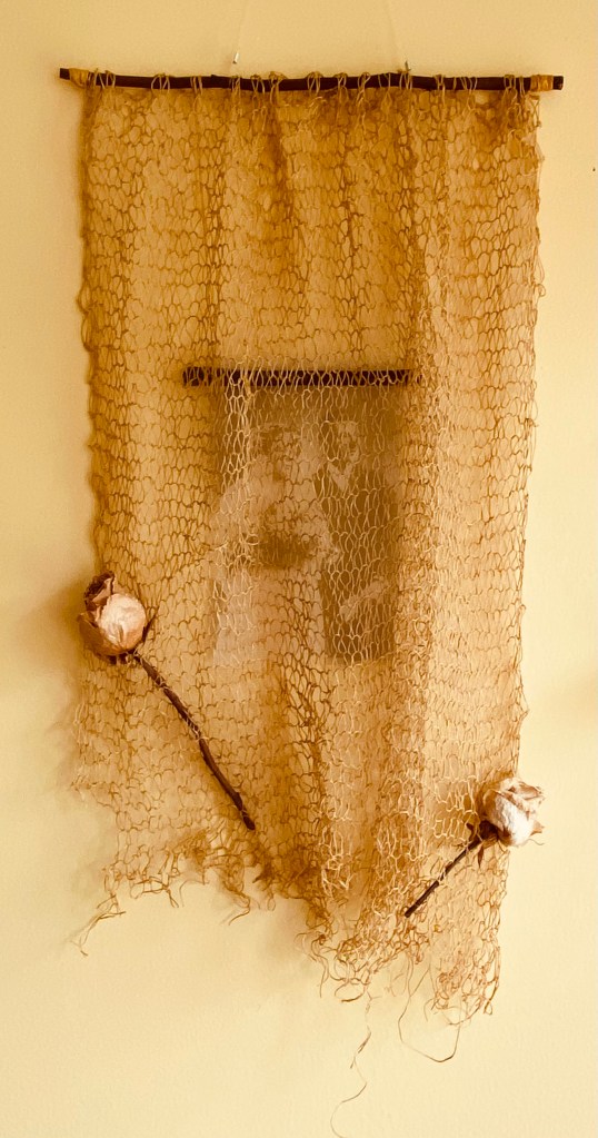 This piece was originally published on my Healing Handcrafting site, but I wanted to share it here with you. It’s relevant to grief and how I use fiber art and creativity to engage with and interact with my loved ones who are no longer with us. I will have more to say on this as I just started a piece that has things in it my mom used in her artwork. ~ bradie